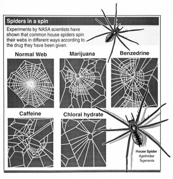 What happens to a spider when she drinks ethanol?